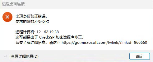 Windows操作系统的本地PC,通过RDP协议(如mstsc方式)远程桌面连接Windows服务器报错,报错显示出现身份验证错误,要求的函数不受支持。
